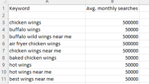 - Ask your technician to help you make a list of “keywords.” The programmer has tools to use that will help them come up with a minimum of 30 keywords that need to be added to your landing page content. They will explain this more in depth. For the “chicken wings” example above, the main keywords might be: